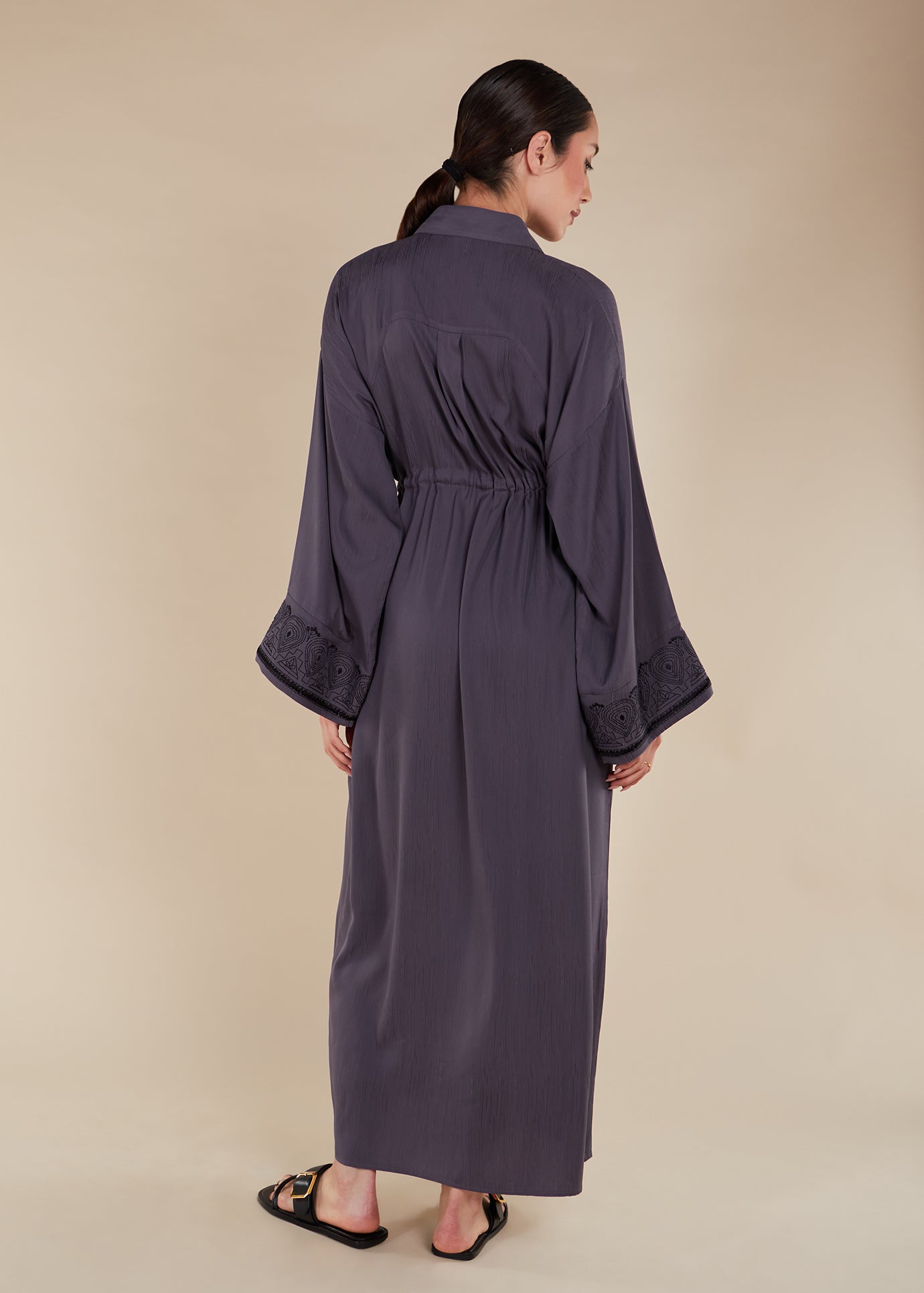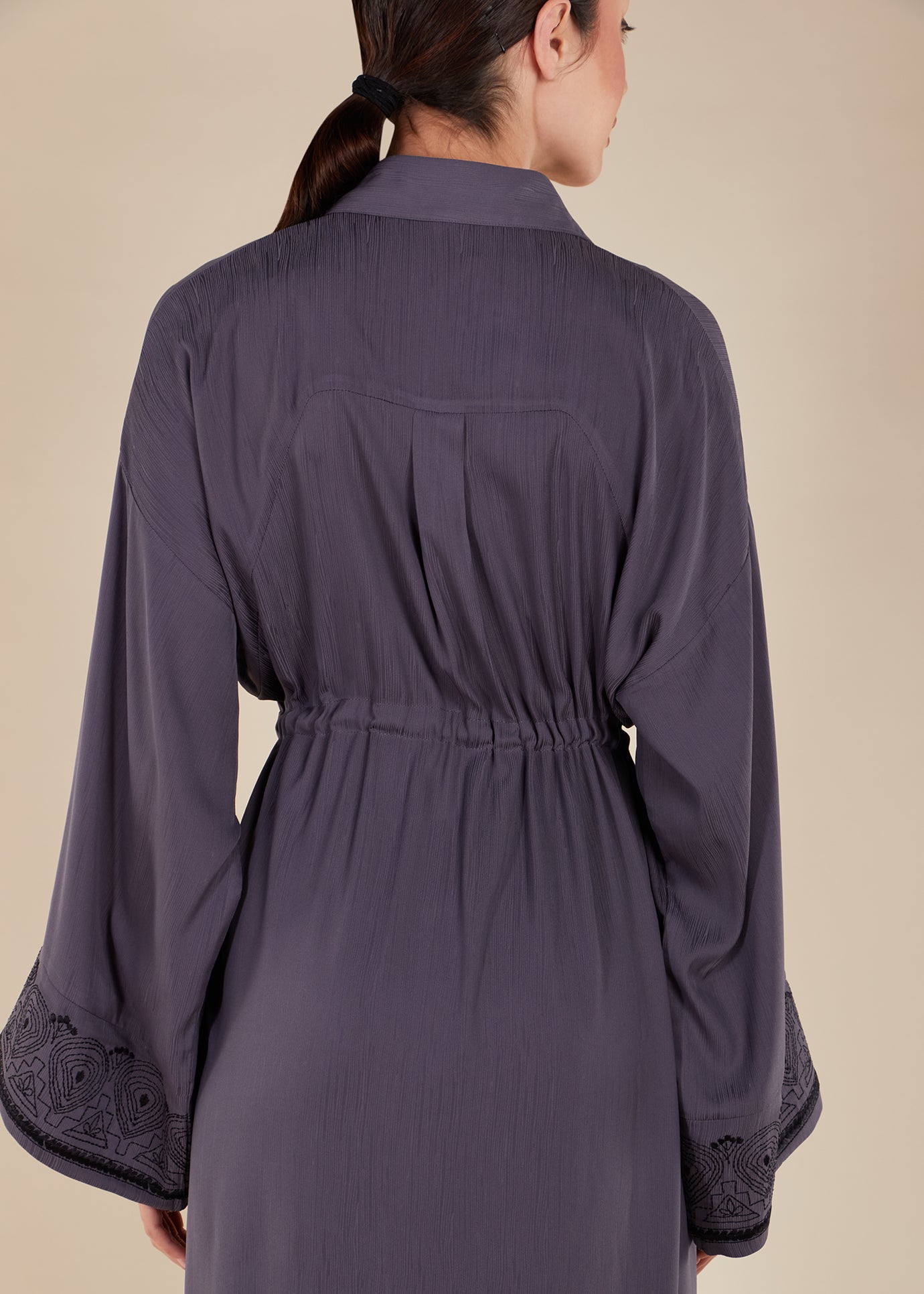 Yama Maxi is designed with a loose bodice and a drawcord detail that lets you cinch your waist for a flattering silhouette. Its standard collars and concealed buttons give a clean look, while the Japanese style embroidery on the cuffs adds a beautiful touch. This maxi dress is a softer, more relaxed option for any occasion, whether it's a casual day or part of your vacation wardrobe.