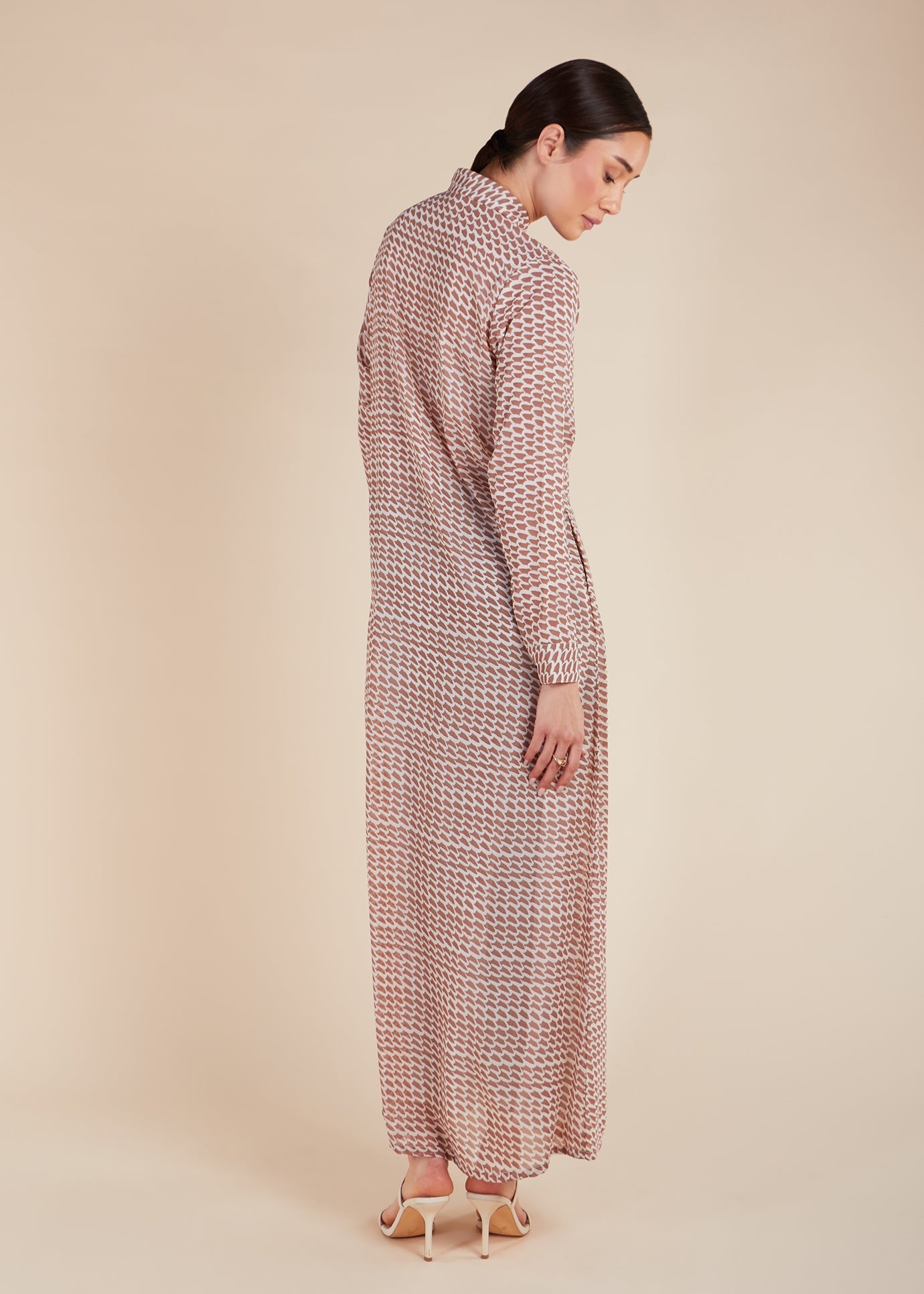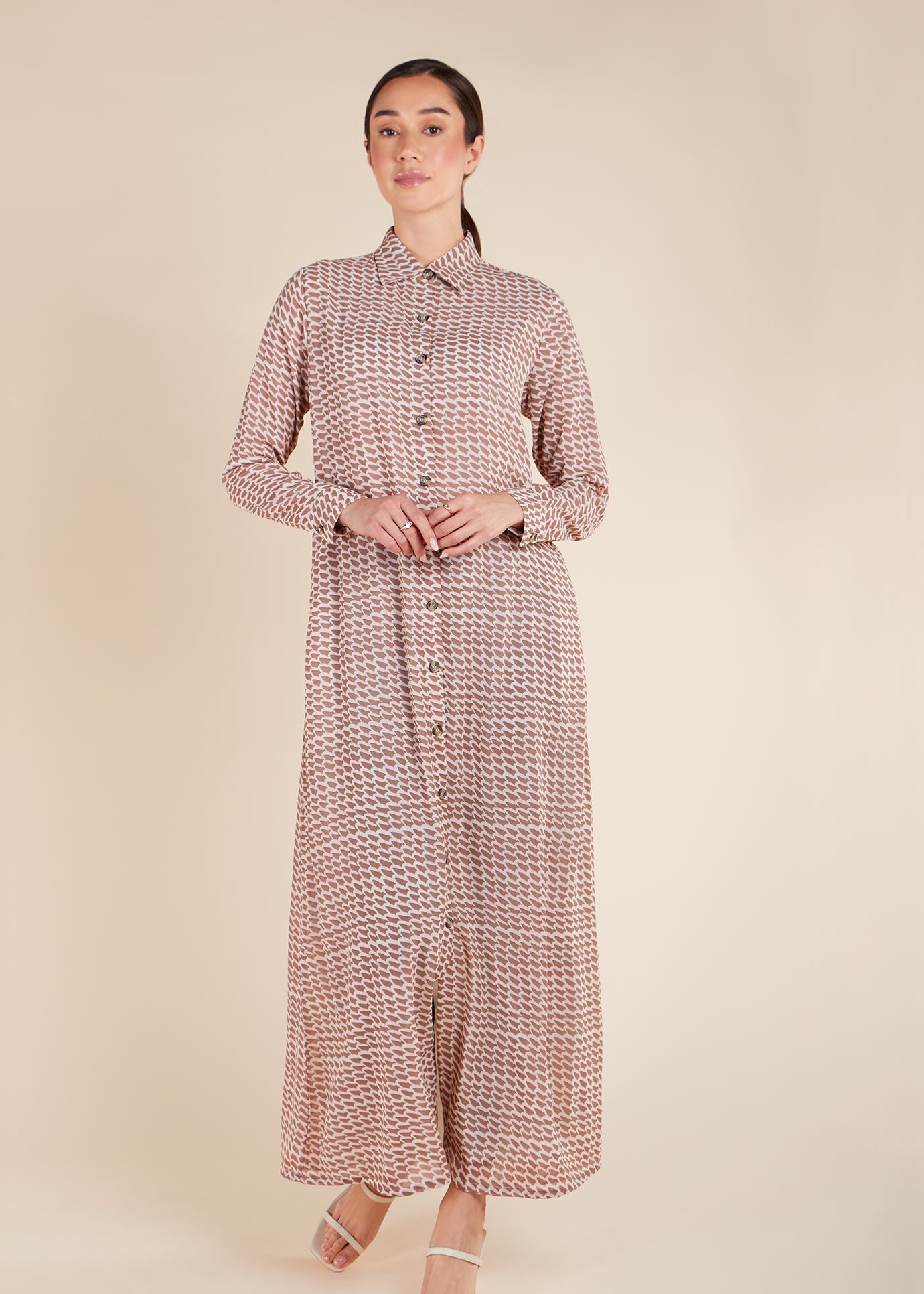 This stylish Yamane Maxi Dress features a geometric print and a slimline cut. The dress is fully lined, ensuring maximum modesty and comfort. With its horn buttons and discreet side pockets, it combines practicality and fashion seamlessly.