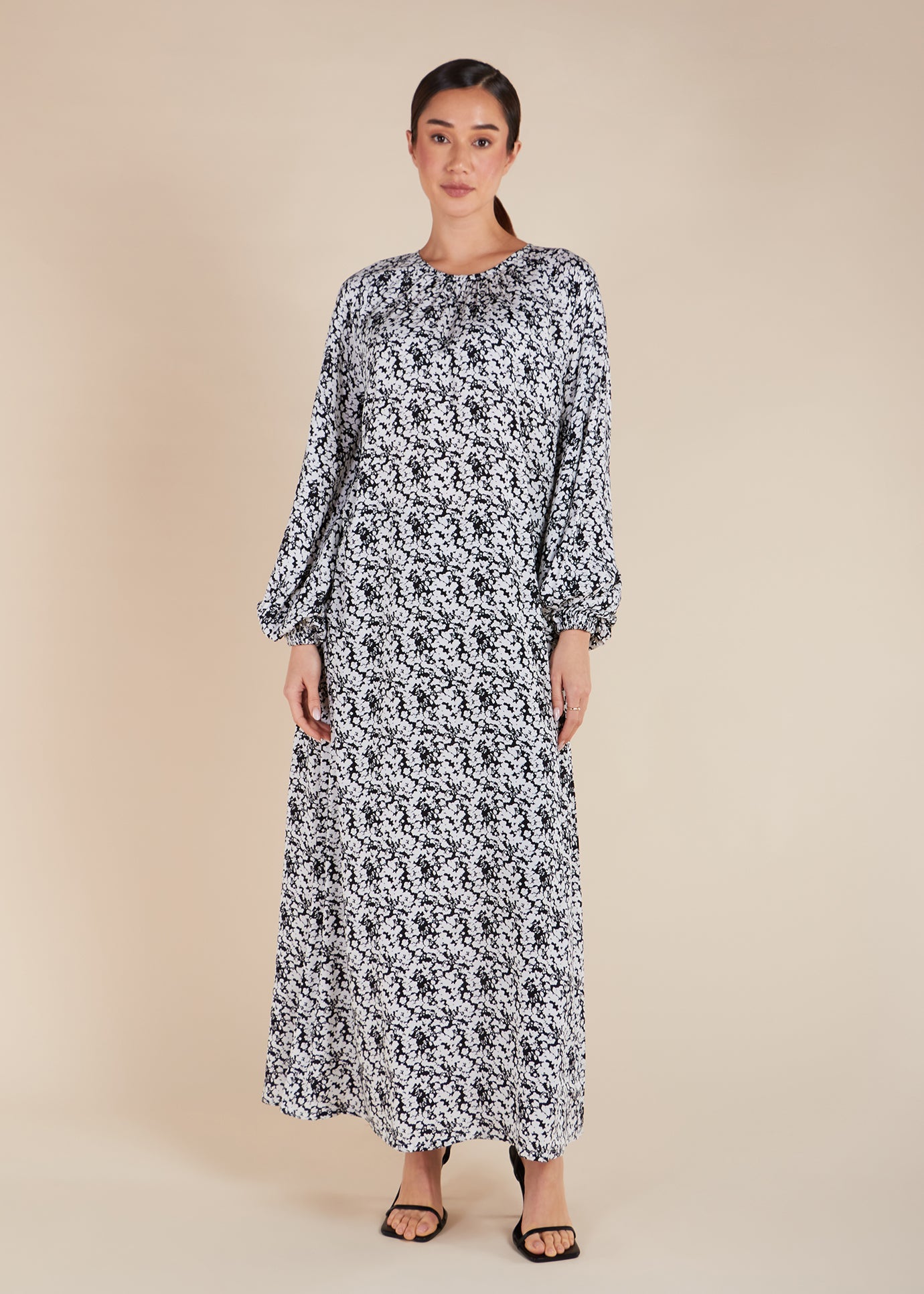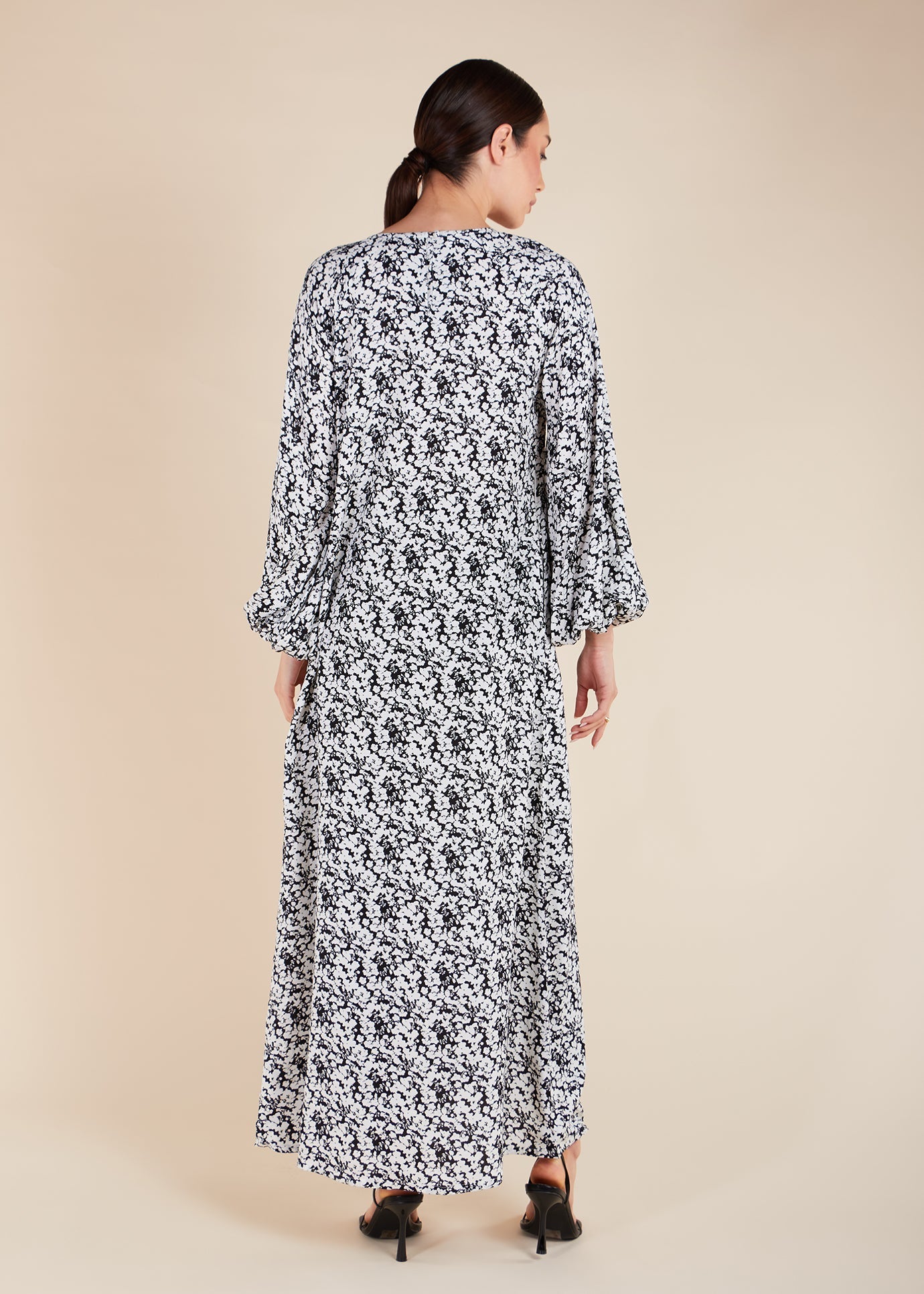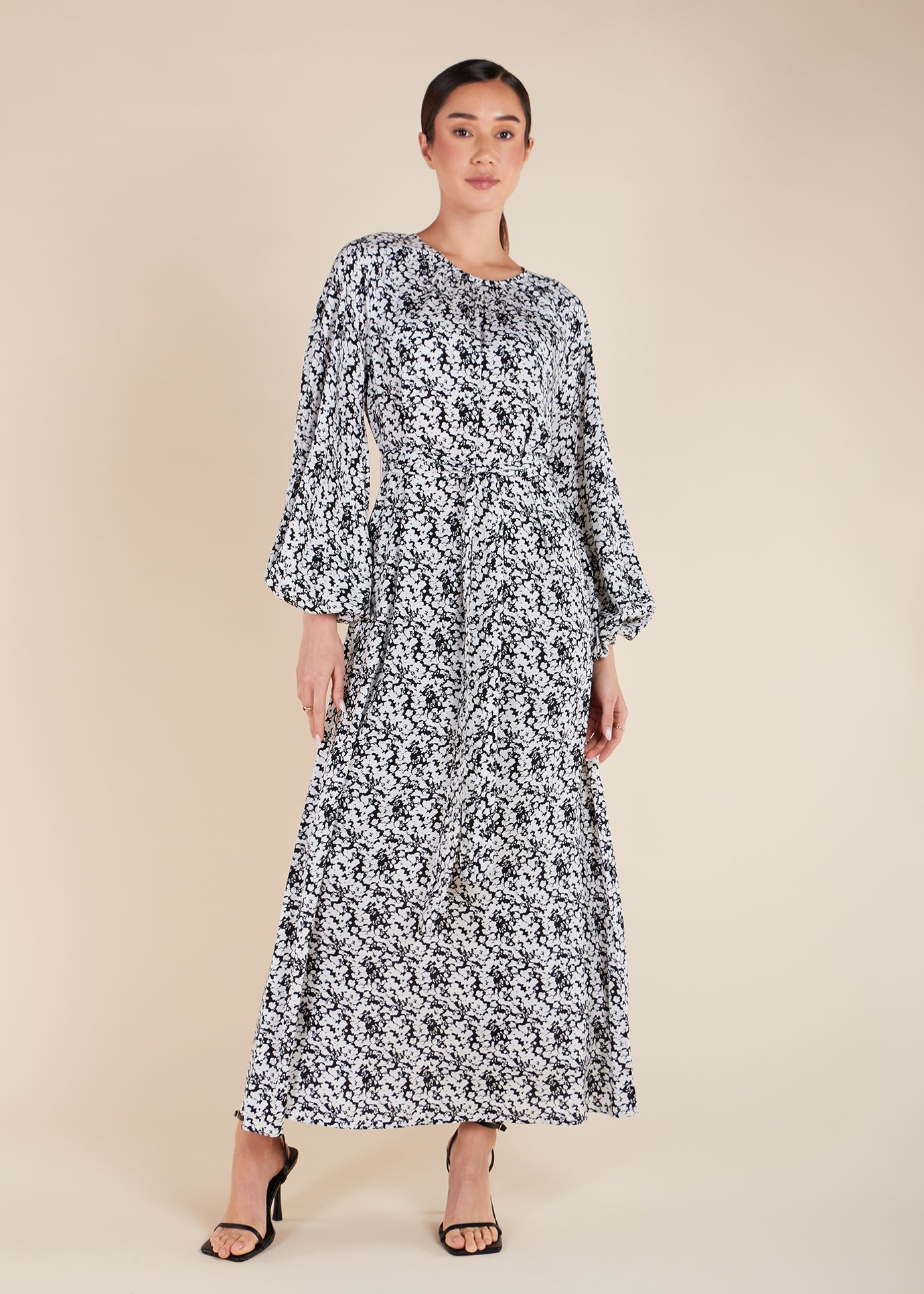 This Yuki Maxi Dress features loose-fitting, balloon-style sleeves and a rounded neckline for a simply elegant look. It also comes with an optional belt for styling.